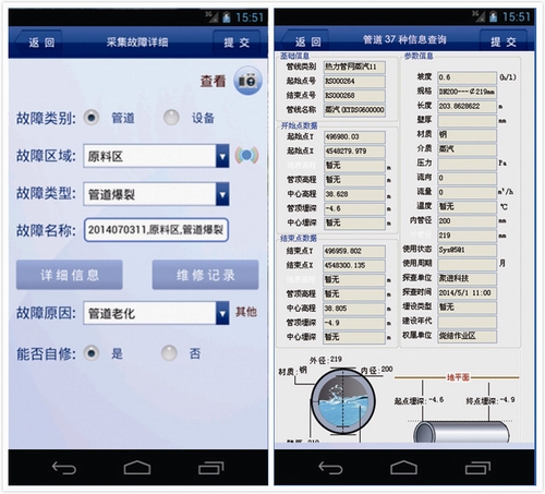 ■ 手持端PDA功能主要是對(duì)管道的日常維修進(jìn)行管控,為管道的排查上報(bào)故障等工作提供方便。