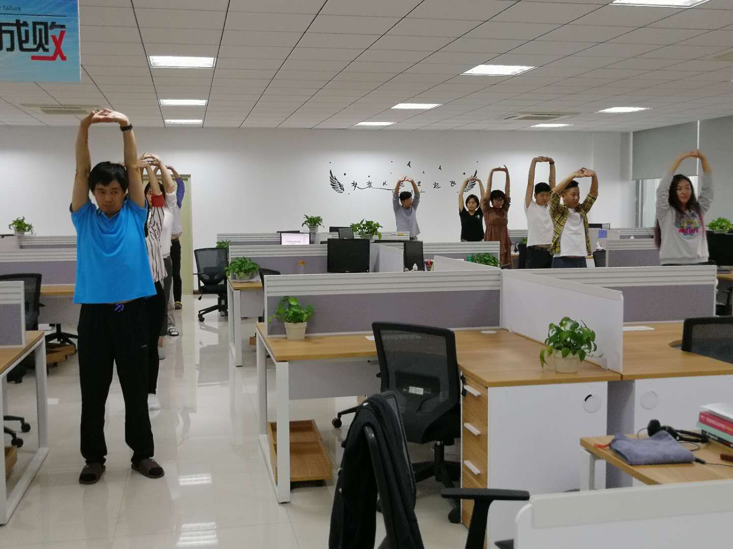 從8月31日起,只要是工作日,聚進第一套辦公室保健操的音樂就會在下午3點準時響起,員工也自發(fā)地起身做操。一遍保健操下來,大家都會有些發(fā)熱的感覺。